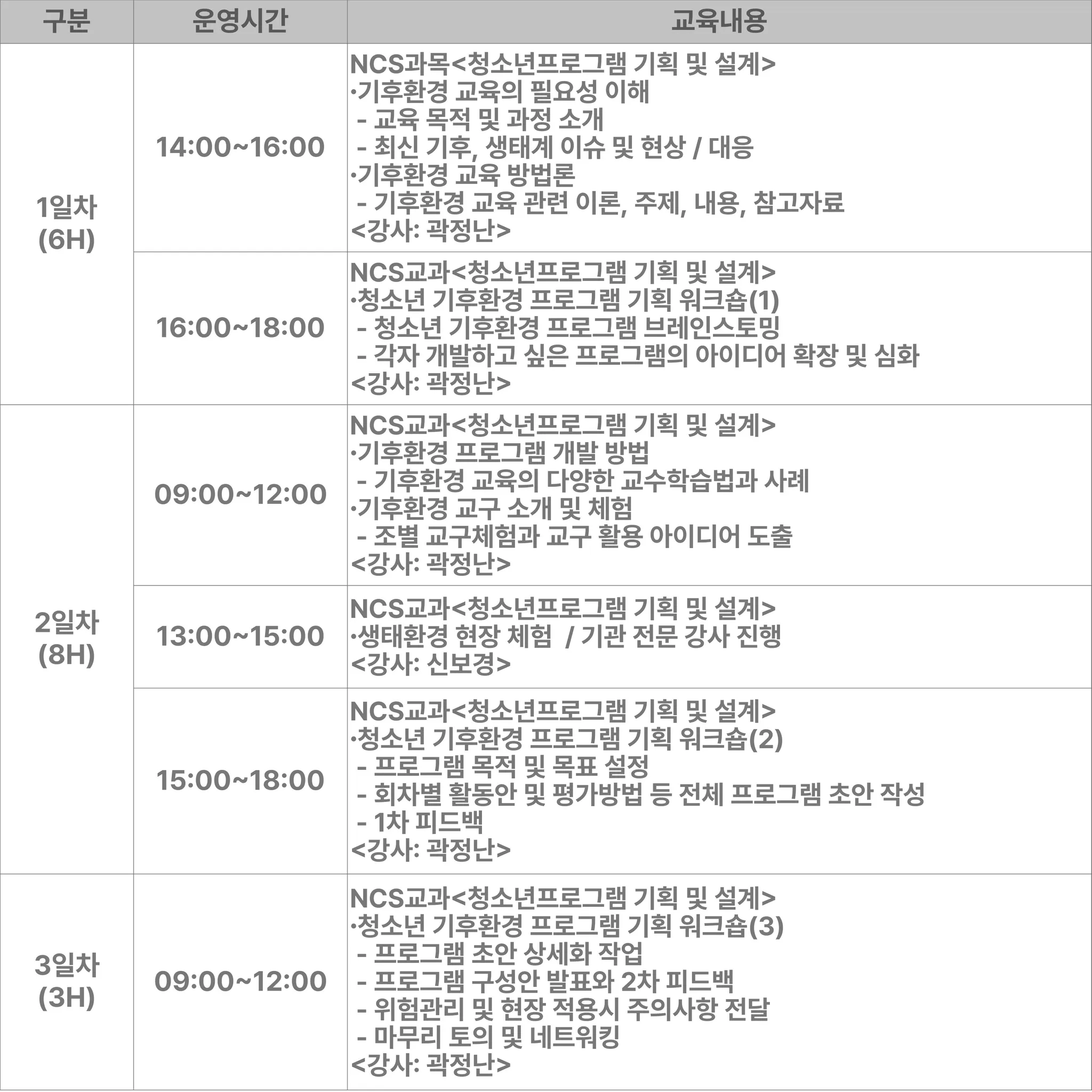 과정 운영 일정표