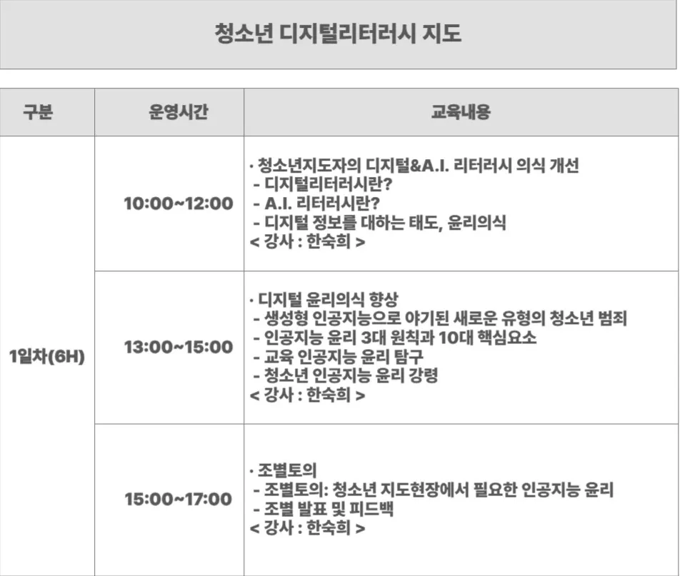 디지털 리터러시 및 A.I. 리터러시에 대해 설명하고 새롭게 등장한 생성형 인공지능, 디지털 환경에서 발생하는 데이터와 관련된 문제에 대해 이해하고 올바른 윤리의식을 함양할 수 있다.