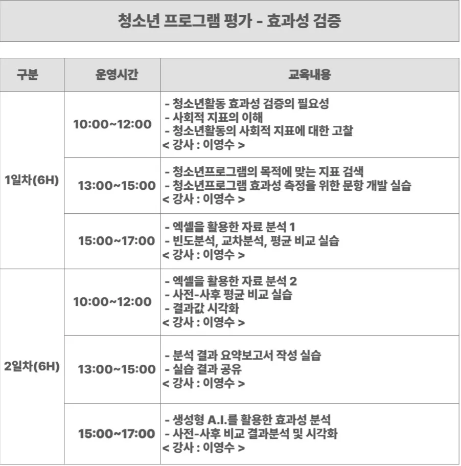 청소년프로그램 효과성 검증의 필요성을 이해할 수 있다.
