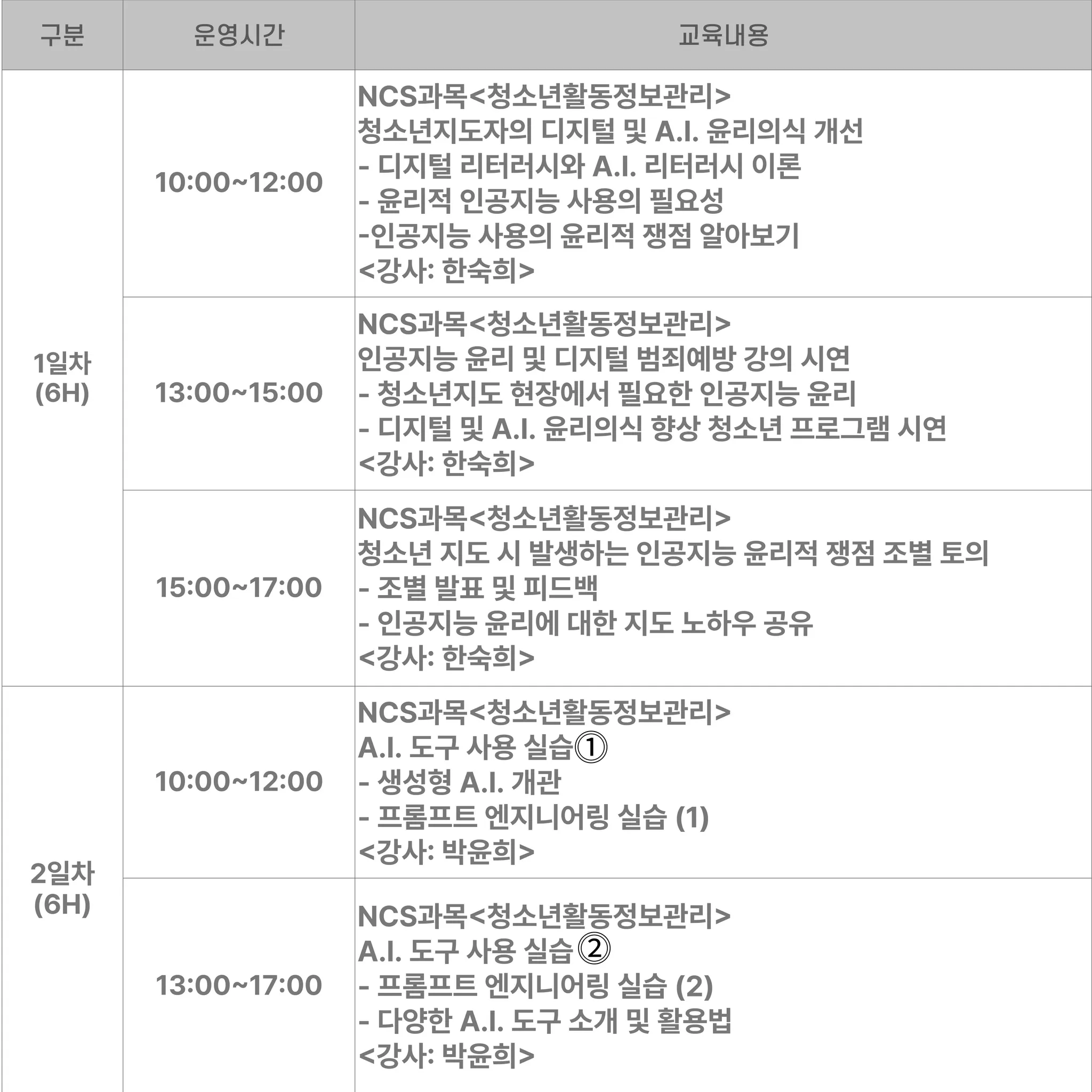 디지털 리터러시 및 A.I. 리터러시에 대해 설명하고 새롭게 등장한 생성형 인공지능, 디지털 환경에서 발생하는 데이터와 관련된 문제에 대해 이해하고 올바른 윤리의식을 함양할 수 있다.
