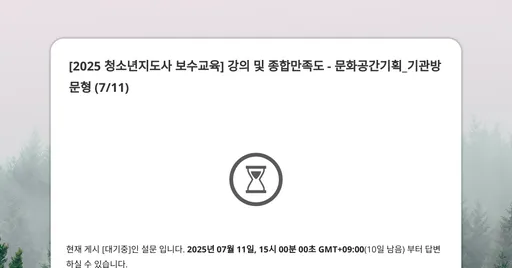 [2025 청소년지도사 보수교육] 강의 및 종합만족도 - 문화공간기획_기관방문형 (7/11)