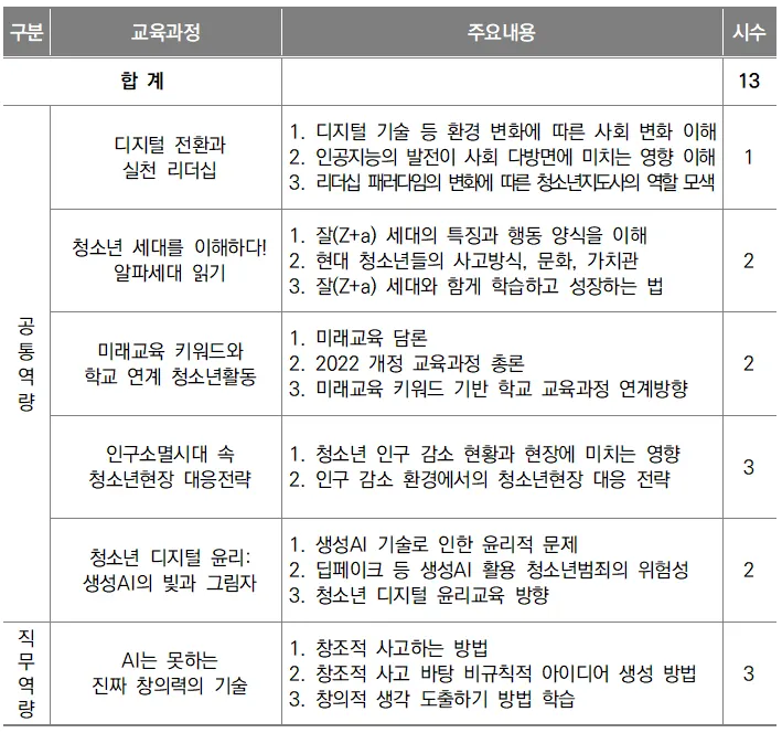 1. 사전 온라인교육 13시간 + 집합교육 6시간으로 구성된 과정입니다.