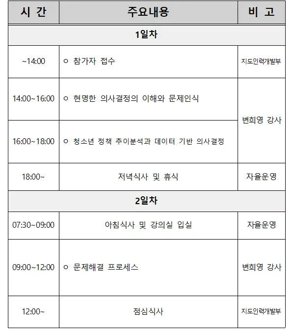 ※ 해당 과정은 기초실무자 맞춤형으로 개발되었으나, 이외 직급도 수강 가능합니다.