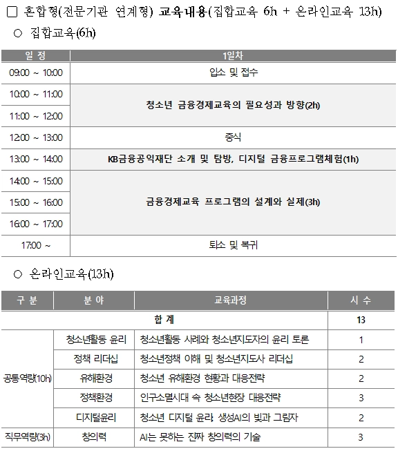 교육시간 : 오프라인 6시간 + 온라인 13시간