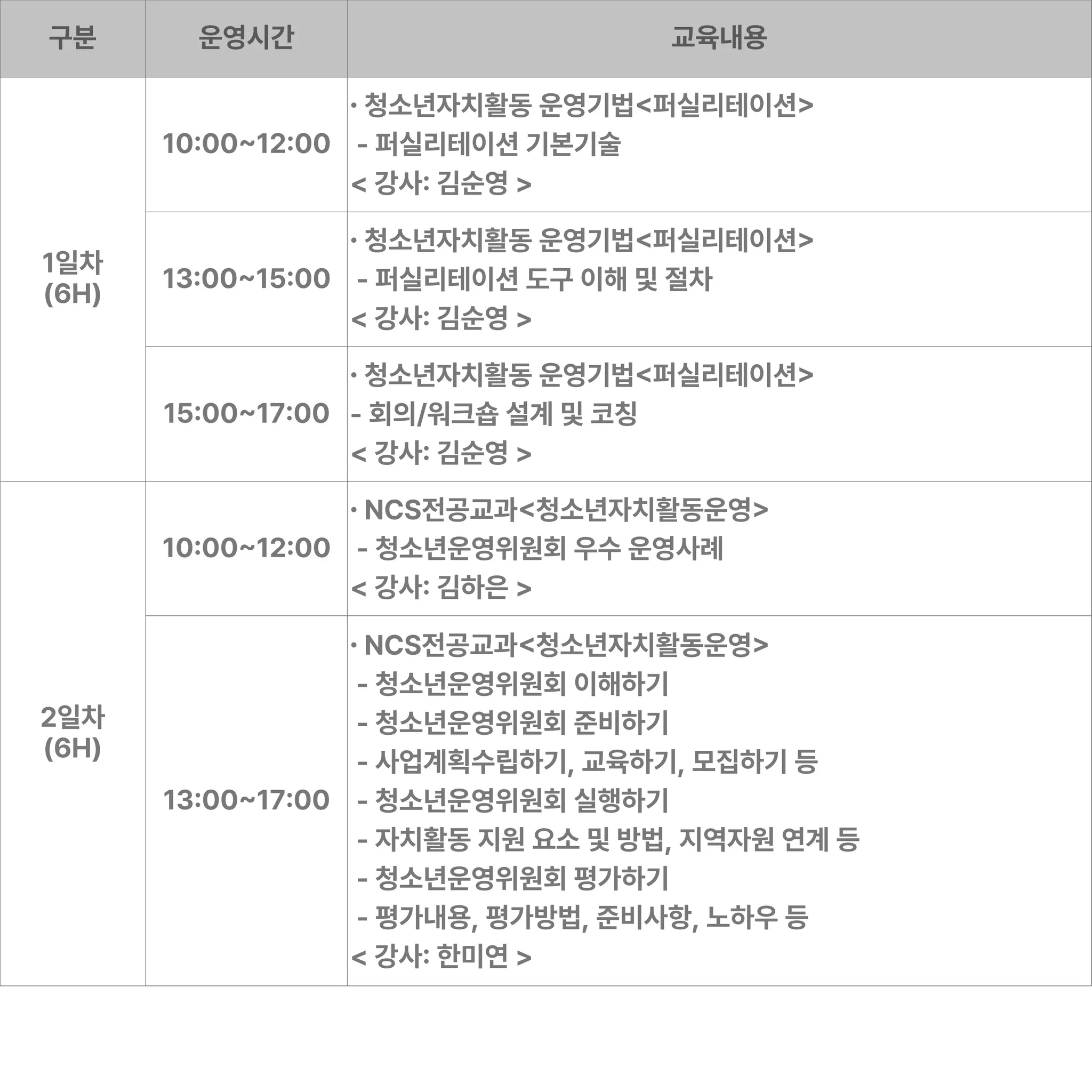 과정별 상세안내