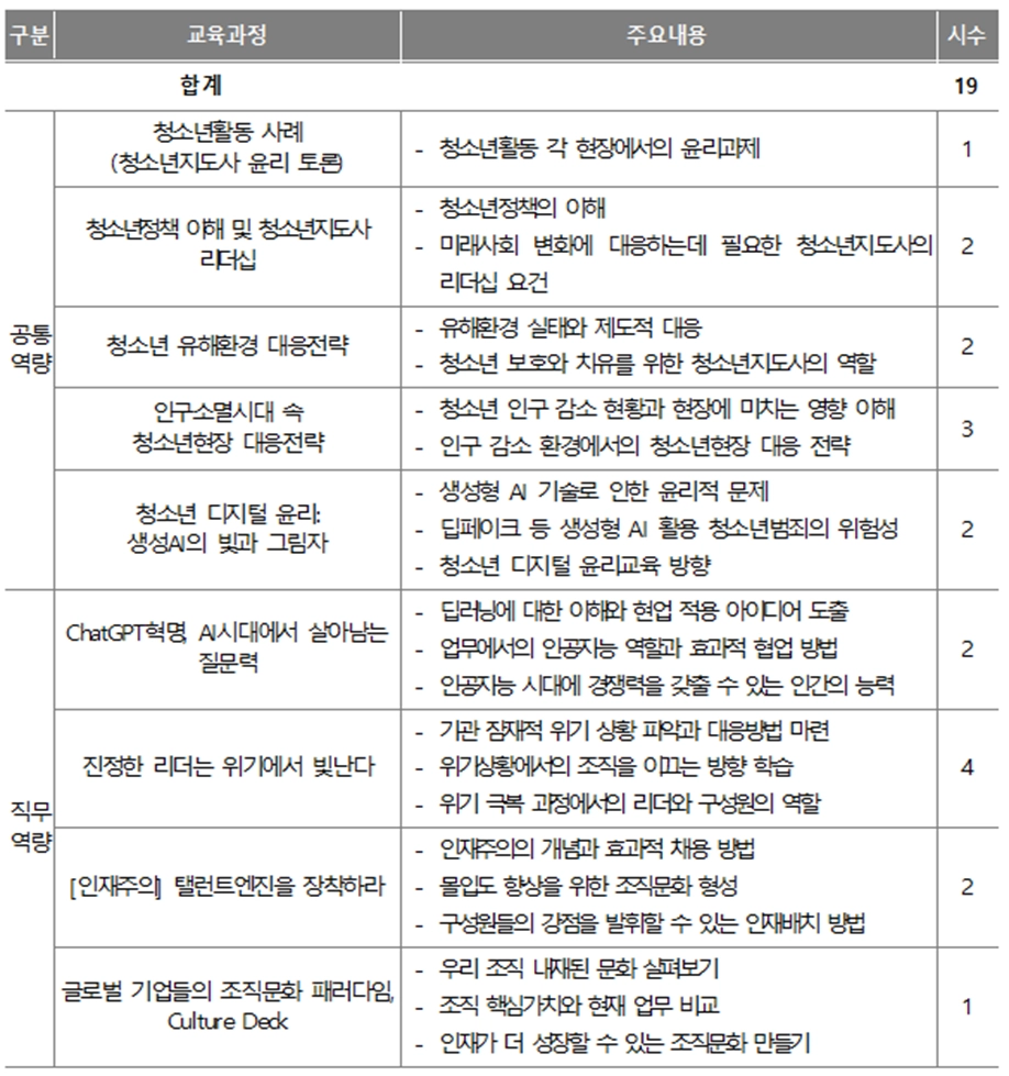 ※ 해당 과정은 기관운영자 맞춤형으로 개발되었으나, 이외 직급도 수강 가능합니다.