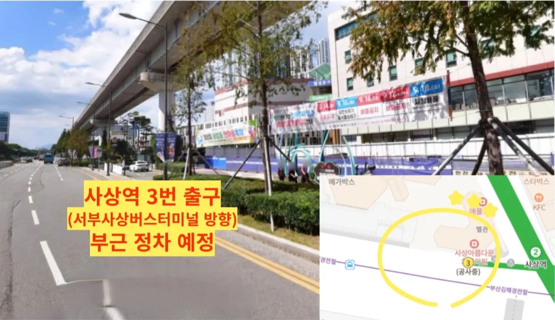 : 사상역 3번 출구 부근 (서부사상버스터미널 방향)