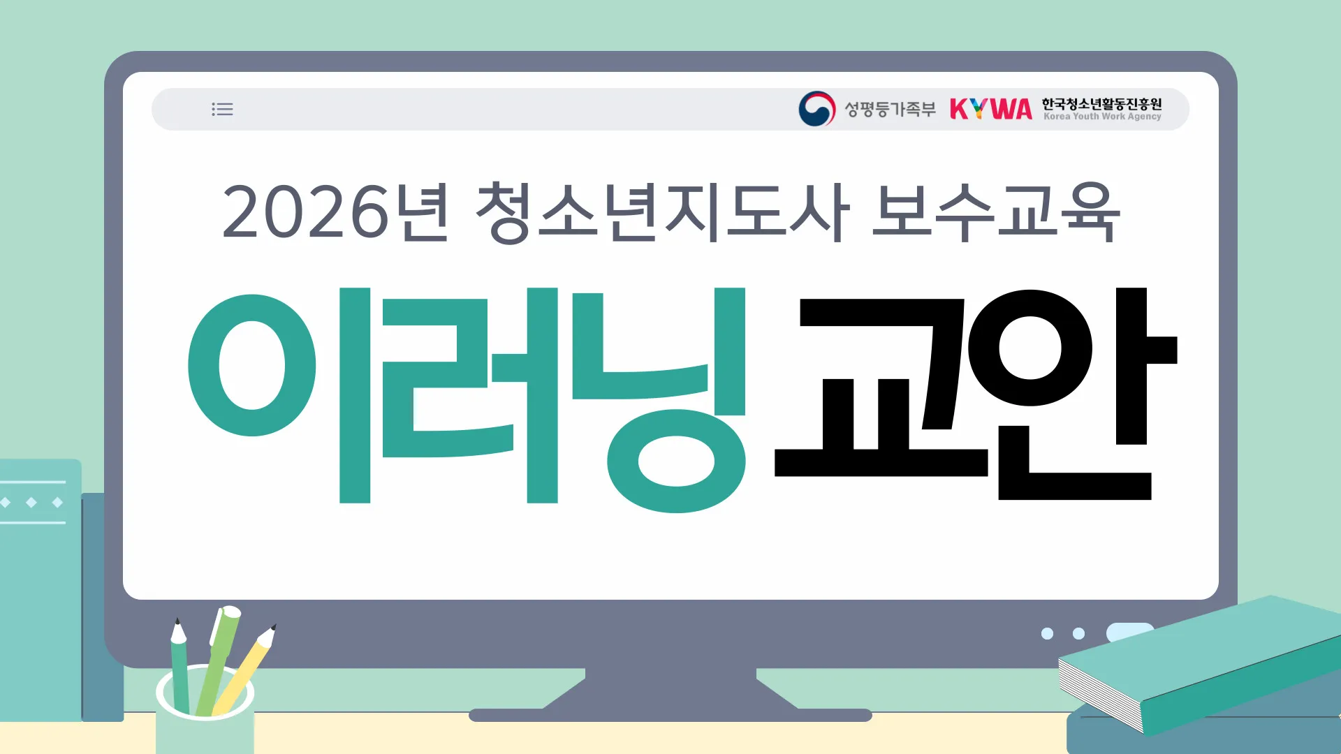 2026년 청소년지도사 보수교육 교안입니다. 연수유형(온라인, 혼합형 등) 확인 후 다운 바랍니다.